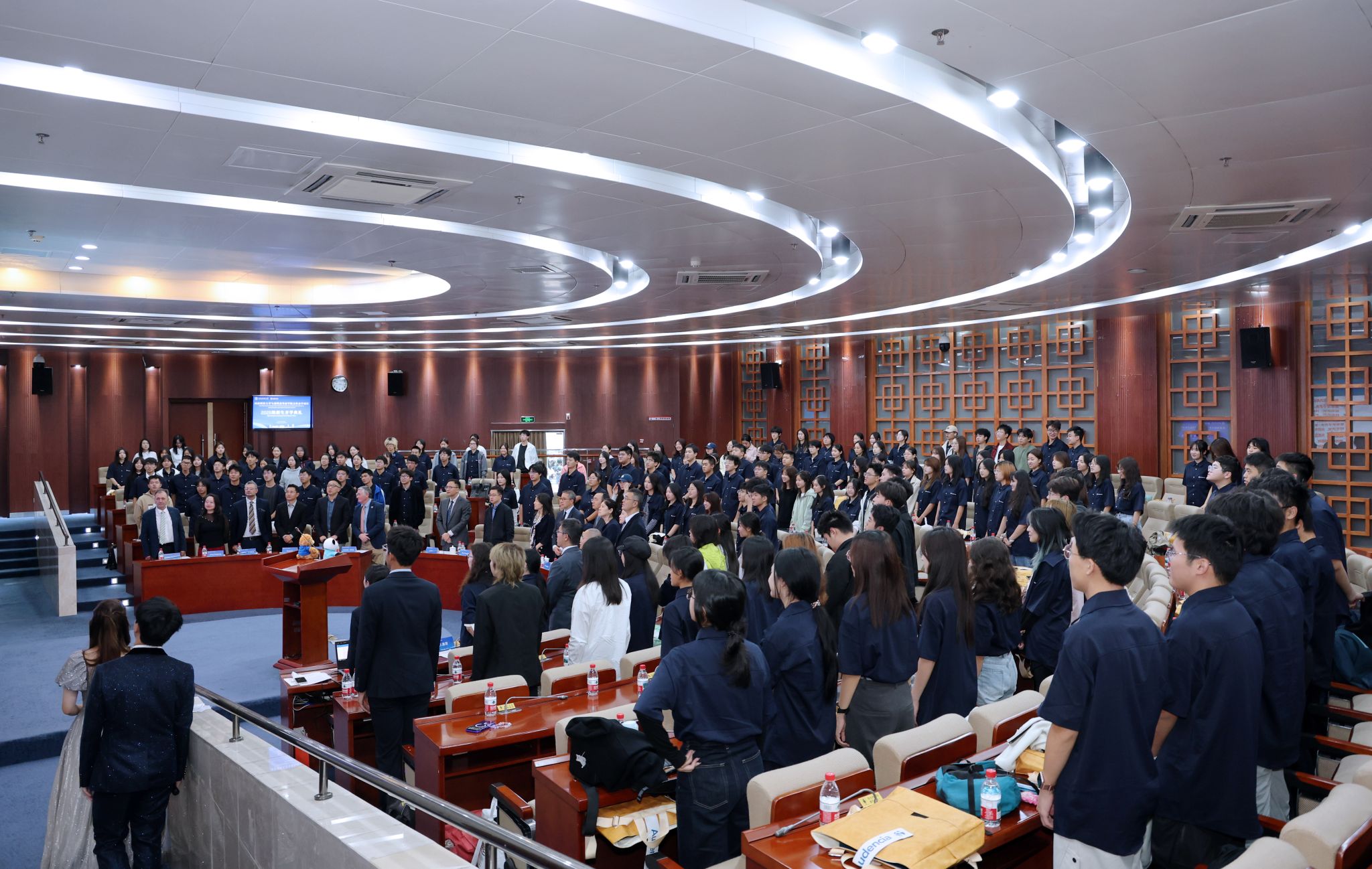 典礼现场,2025级全体新生身着统一文化衫,精神饱满,掌声不断,以昂扬的姿态回应师长们的殷切期望。开学典礼在全体师生齐声奏唱校歌的庄严氛围中圆满落幕。