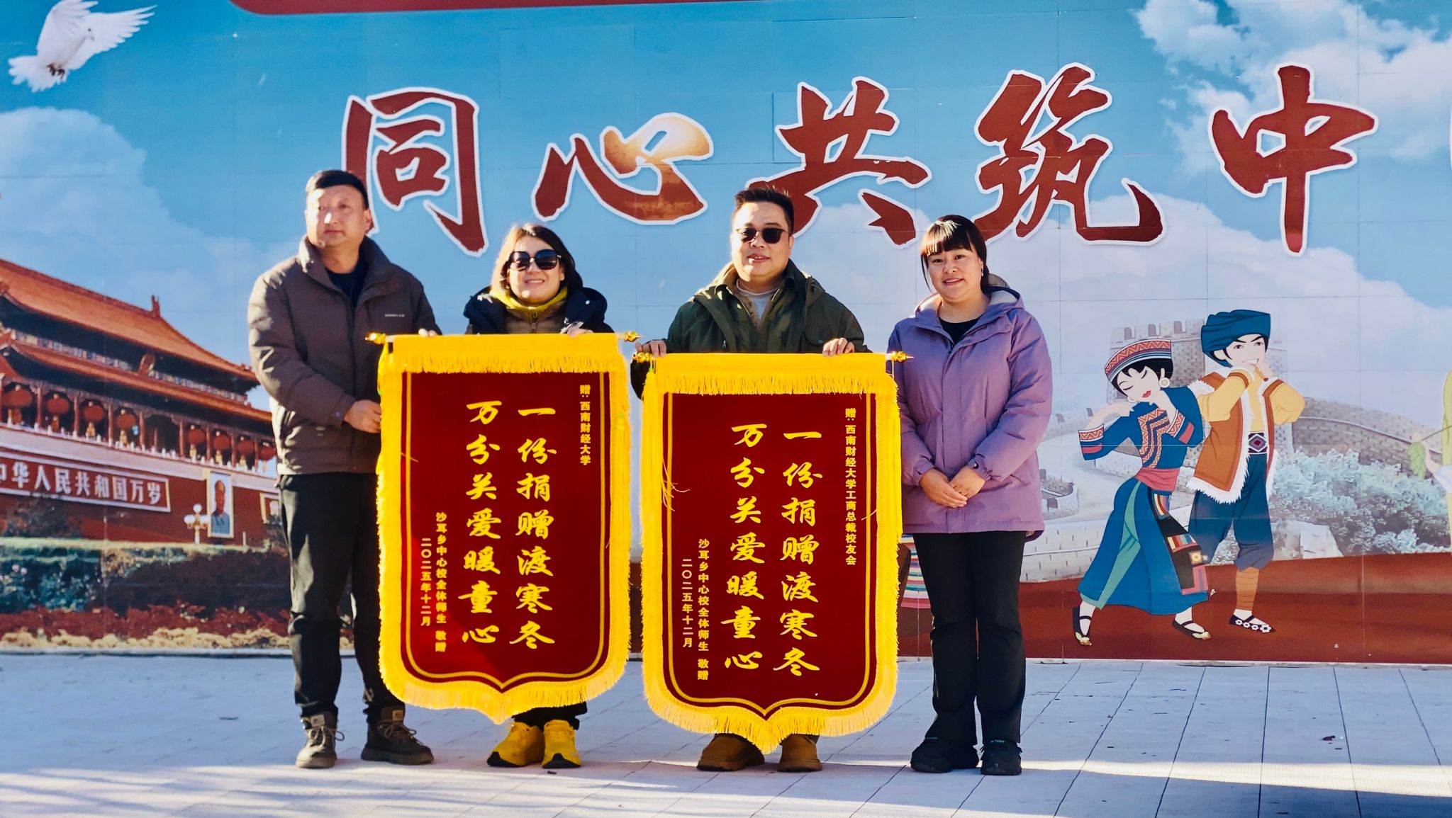 活动中,沙耳乡中心校校长严应康代表全校师生接受捐赠并致谢。他表示,本次所受赠的空调、文体用品等物资,有效改善了学校冬季学习环境,丰富了学生课余生活,不仅解决了实际困难,更传递了温暖与鼓励。402永利集团官网EDP中心主任郑红霞表示,学校始终秉持经世济民担当,本次捐赠是学院及校友会践行社会责任、聚焦教育帮扶的切实举措,未来将持续关注并支持乡村教育发展。活动最后,校方向捐赠方赠送锦旗以示感谢。