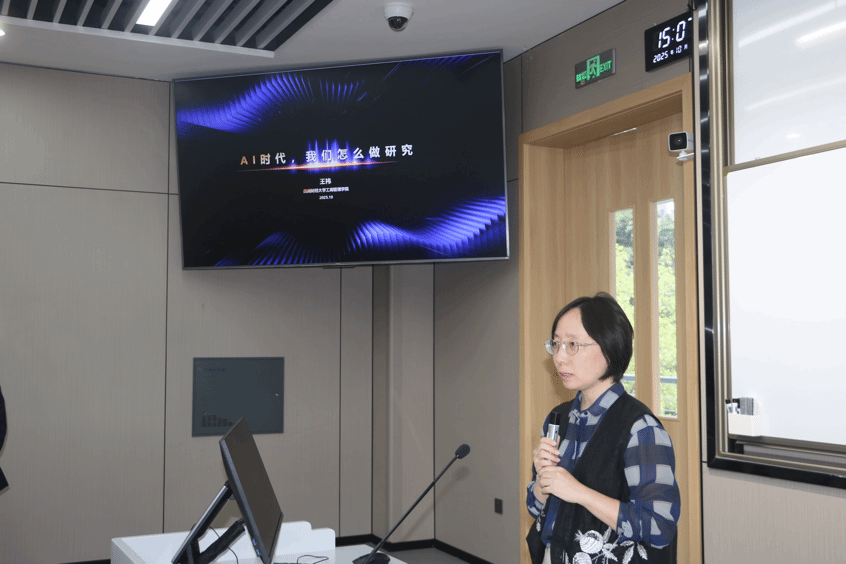 王祎以“AI时代,我们怎么做研究”为主题,从技术的生产力飞跃出发,引领同学们进行了一场前沿思辨。她以人工智能系统在语言与图像识别能力上的快速演进切入,从“研究之法、研究之道、研究之术”三个维度探寻研究者如何做好研究;在最后就同学们如何使用AI工具提升科研素养提出了具体建议;并强调在研究过程中,研究者要夯实知识基础,提出新颖且具有创造力的问题,并始终保持学术主动性。